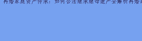 再婚家庭资产传承:如何合法继承继母遗产全解析